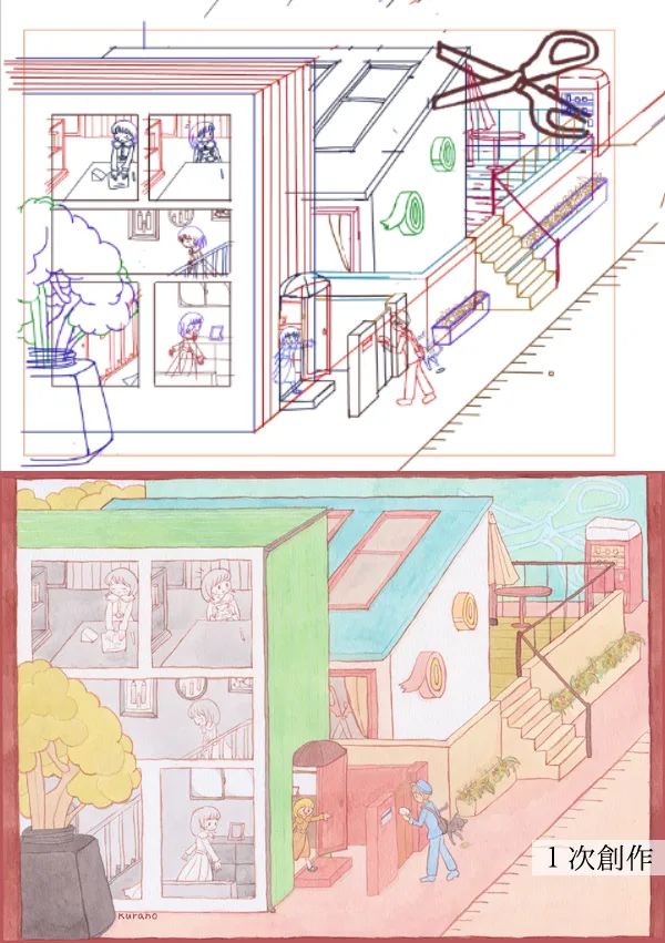 デジタルからアナログへ 心の整理として今までの活動を振り返ってみます ※二次創作絵が出てくるのでご注意ください 学生時代はずっとアナログオンリーで(ときどきお絵描き掲示板)デジタルのソフトは持っていなかったけれど、学校のサークル課題にデジタルが必要になりクリスタを購入したことが始まり アナログ時代 ![]() アクリルガッシュを薄塗り 広範囲を塗るのが苦手だったので髪は一本一本塗ってました 若さ… FA始める ![]() 某ジャンルにハマりFAを描くようになる アナログでもFAを描いていたけれど、髪など色の再現が難しかったため二次創作はデジタルで描くようになる デジタル慣れしていく だんだん一次の方もデジタル作業が多くなるように 線→デジタル 塗り→アナログ ![]() (頑張った絵) 道具を準備しなくていいラクさから次第に一次二次どちらもデジタルになる (ラフはずっとアナログ) デジタルの魅力と苦手意識 デジタルは“自分の色”を隠すことができる ヘキとかクセとか 二次創作ではこれらを出したくなかったので、修正できるデジタルと二次の相性はバツグンで自分が描いてるけれど自分の絵じゃないような、自分から切り離した絵が描ける感覚があった ただ作業自体は全然楽しくなくて「完成した絵が見たい」というモチベで描いていた なのでつい誘惑に負けてsnsを見てしまうこともしばしば… アナログと違って触感もないので集中しづらく作業中もネガティブなことを考えてしまうためアニメを流したりして思考があっちこっちいかないように気をつけた 苦戦したけれどイメージした絵へ近づけることができるようになると嬉しかった 画力…というかデジタルの技術が上がっていった感じです ![]() アナログに戻ろうと思ったきっかけ ・久しぶりにアナログで描いたらめちゃくちゃ楽しかった ・デジタルで自分の満足のいく絵が描けた ・アナログが上手い人への憧れ ・目や手が疲れやすくなった などなど ドールでアナログの楽しさを思い出す 『ドールにハマる→単眼ドールのメイクする→自分の好みのドール作れるか調べる→昔フィギュア作りに挑戦して挫折したのを思いだす→今なら作れる…?→粘土で作る→絵の具で塗る』 この流れでアナログ作業の楽しさを思い出しました 筆を持つのもすごく久しぶりだったのに手が感覚を覚えていたのが嬉しかった それからできるだけPC作業を減らしたかったので「tourbox lite」を購入して時短を目指したりできるだけラクに描けないかな〜と考え始める 久しぶりのスケブ 「気分転換にアナログで落書きしよう」と久しぶりにスケブで描いてみたところ、これが!楽しかった!めちゃくちゃ楽しかった!! ![]() (色鉛筆で何も考えずに描く) ずっと「自分はアナログ下手だからデジタルで修正しまくってようやく形になる」と思っていたので意外と描けることにびっくりしました デジタルのおかげで形を捉えるのが上手になっていたのかもしれない… そうすると、もう「楽しいならそれで良いじゃん!!」という気持ちになってくる 二次創作の方も“自分の色”を出さないように気をつけていたけれどそういう制約を課すことにも疲れていて、「アナログ楽しい!!」という気持ちのまま描いてみた そしたら思ったより描けて嬉しかった